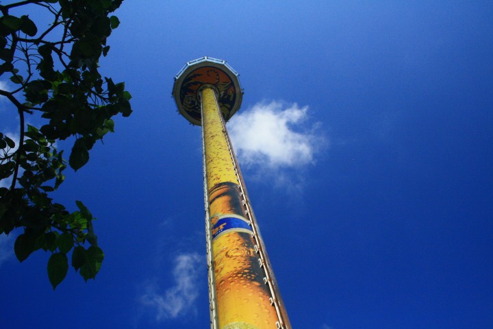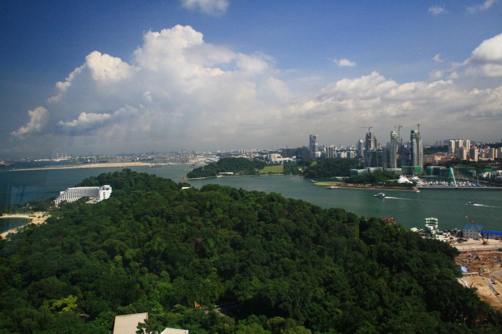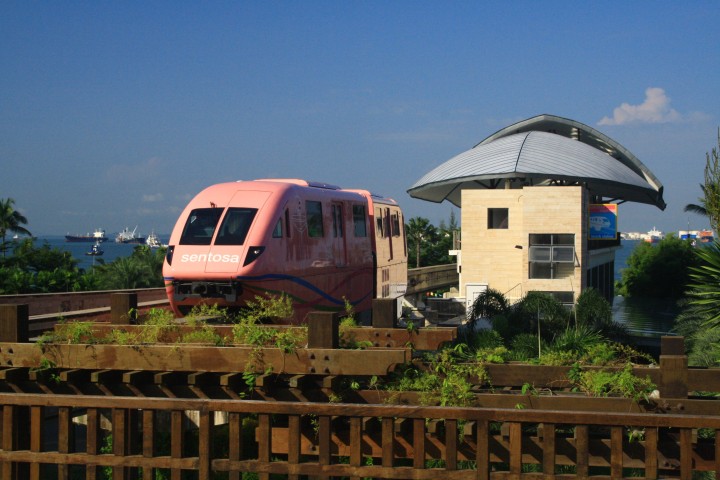 Il mattino successivo lo dedichiamo alla visita di Sentosa, un'isoletta che racchiude un grande parco dotato di divertimenti e strutture ricettive di ogni genere. Sentosa è facile da raggiungere ed è estremamente comoda da girare. Dista appena mezzo chilometro dalle coste singaporesi ed è accessibile tramite semplici bus oppure con la monorotaia, un'infrastruttura moderna ed efficace che, oltre a coprire il tratto di mare che separa Singapore da Sentosa, dispone di due stazioni sull'isola stessa: Imbiah Station e Beach Station. Il mezzo di trasporto più suggestivo è però la telecabina sospesa sul mare che, partendo dalla cima del Monte Faber, consente di raggiungere Sentosa dopo aver sorvolato la città ed il famoso porto di Singapore. L'isola è un'articolata combinazione di divertimenti, attrazioni e costruzioni artificiali che si sono ritagliate il proprio spazio all'interno di uno scenario dominato da intricate foreste, spiagge e mare. Tra i luoghi più apprezzati dai turisti si annovera la Tiger Sky Tower, che con i suoi 110 metri di altezza da terra è un luogo ideale per spaziare con lo sguardo dalla Malesia all'Indonesia, il tutto all'interno di un fantascientifico disco rotante capace di contenere una settantina di visitatori per volta. Qui vicino visitiamo il Butterfly Park and Insect Kingdom, un enorme giardino che ospita numerose specie di insetti tra cui spiccano ben 15.000 farfalle. Una serie di ponticelli e passerelle conducono poi al Merlion gigante. Un ascensore sale sopra fino alla cavità della bocca e da qui si può osservare lo sky-line della città con i suoi grattacieli.