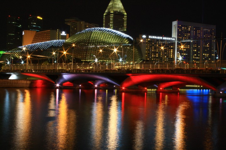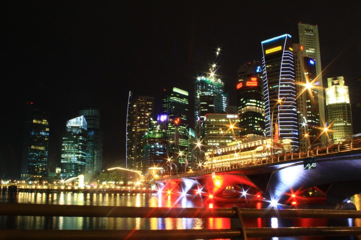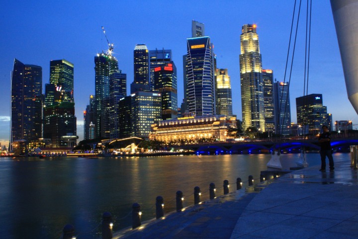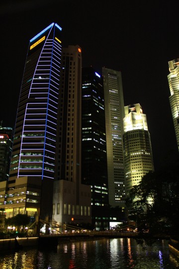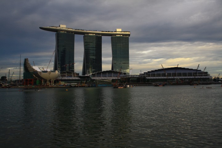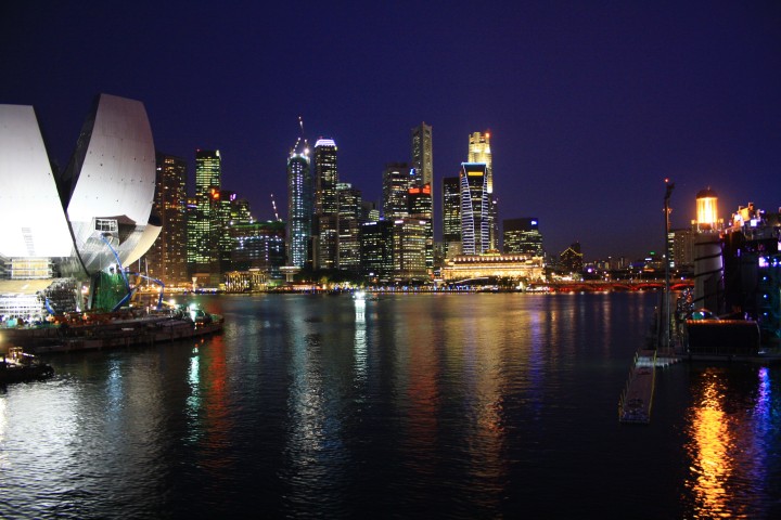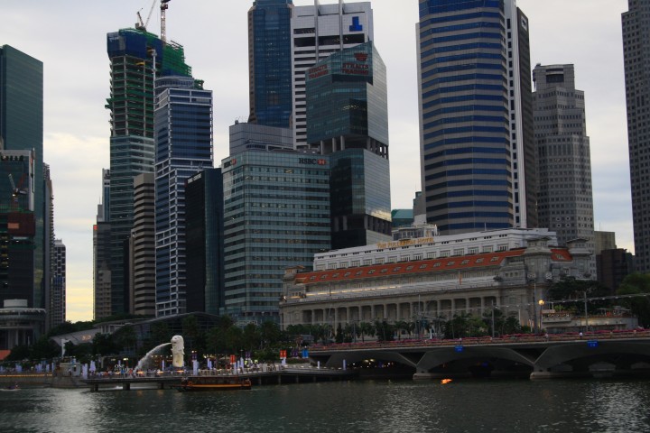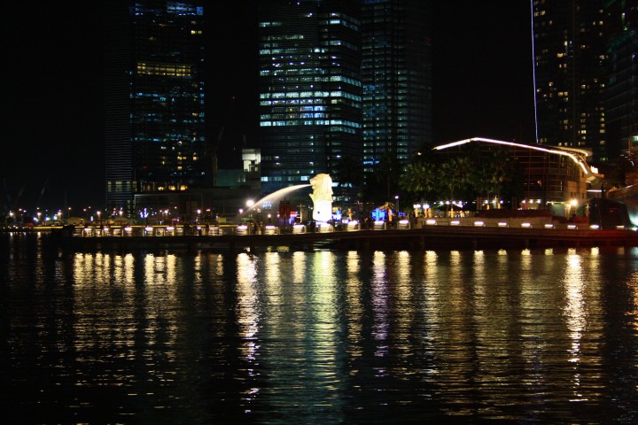 Al calar della sera ci dirigiamo verso la zona di Marina Bay da cui è possibile godere del bellissimo sky-line dei grattacieli del CBD (Central Business District), delle inconfondibili cupole dell'Esplanade e della City Hall. Ma il fiore all'occhiello di questo punto nevralgico di Singapore è il Marina Bay Sands, un "integrated resort" consistente in tre torri da 55 piani sopra le quali poggia una unica terrazza con giardino pensile e piscina sopraelevati. Il panorama, davvero suggestivo, è completato dal profilo dei grattacieli di Raffles Quay, Fullerton Road e Esplanade Drive. Qui sorge anche il Singapore Flyer la ruota panoramica (al momento) più grande del mondo: è alta 165 metri, l'equivalente di un grattacielo di 42 piani, ha 28 capsule tutte dotate di aria condizionata e può trasportare 784 passeggeri. Infine è d'obbligo qualche scatto fotografico al Merlion, la statua/fontana (simbolo di Singapore) a forma di leone con la coda di sirena.